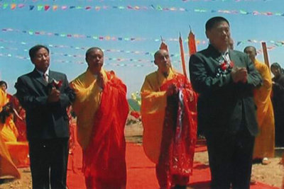 刘会长与恩师圆山法主为东明寺奠基诵经